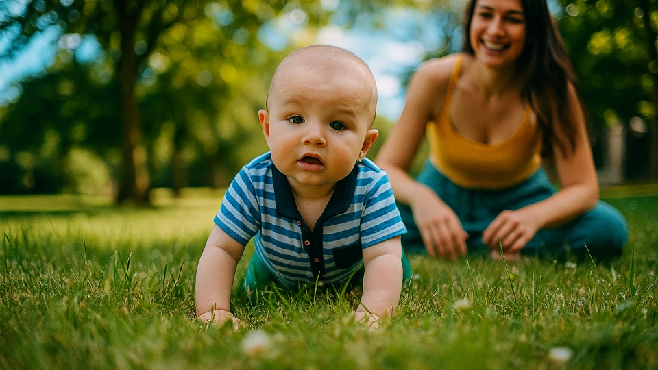 Το καλοκαίρι είναι μια εξαιρετική εποχή για τη φυσική ανάπτυξη της κινητικότητας του παιδιού. Για βρέφη που αρχίζουν να σέρνονται ή να μπουσουλάνε, το γρασίδι είναι ιδανικό – ενθαρρύνει τις φυσικές κινήσεις του παιδιού, οι ίνες του γρασιδιού διεγείρουν τους δερματικούς υποδοχείς και το μωρό μαθαίνει να εξασκεί τις κινήσεις του έξω.