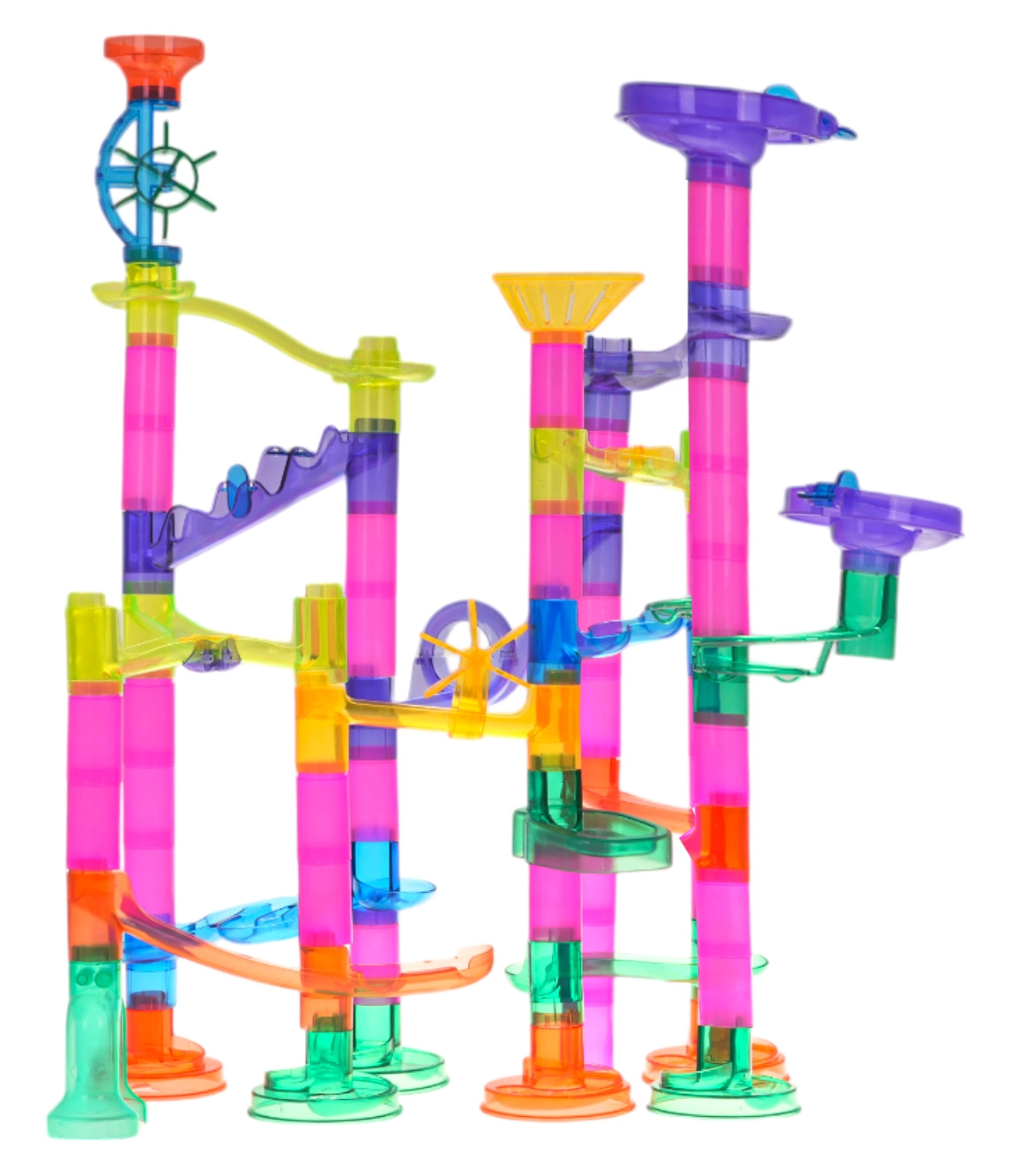 Τα αρθρωτά κομμάτια επιτρέπουν την κατασκευή μικρών κύκλων αλλά και ψηλών πύργων, σπειρών και γεφυρών· κάθε στοιχείο εφαρμόζει με ακρίβεια για σταθερές και ασφαλείς κατασκευές. Η διαδρομή με μπίλιες είναι εύκολα επεκτάσιμη με επιπλέον κομμάτια και επεκτάσεις της σειράς, δημιουργώντας ατελείωτους συνδυασμούς διαδρομών και εμποδίων. Ποιοτικά, ανθεκτικά υλικά και λείες επιφάνειες εξασφαλίζουν ομαλή κίνηση των πολύχρωμων μπιλιών και μεγάλη αντοχή στον χρόνο.