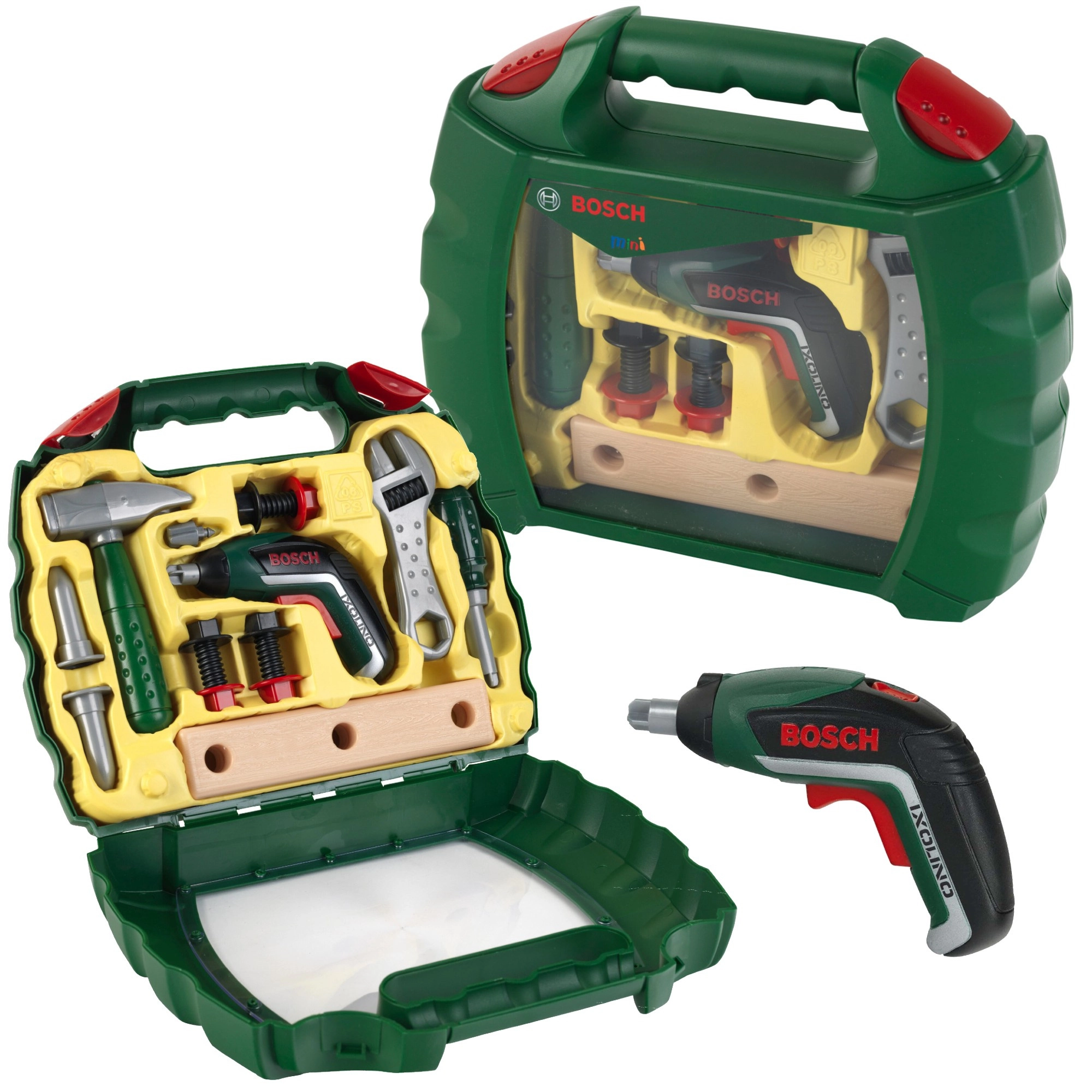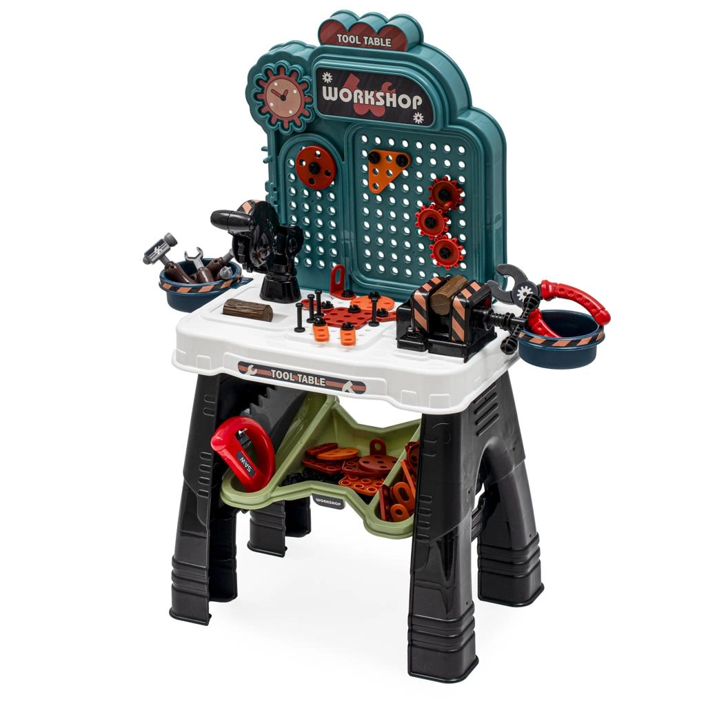 Θα βρείτε παιδικό πάγκο εργασίας, ξύλινο πάγκο αλλά και ελαφρύ πλαστικό πάγκο με αποθηκευτικές θήκες, καθώς και σετ εργαλείων για μικρούς μαστόρους: σφυρί, κατσαβίδι, δραπανοκατσάβιδο, κλειδιά, πριόνι, μέτρο και προστατευτικά αξεσουάρ. Οι ρεαλιστικές λειτουργίες υποστηρίζουν την ενδυνάμωση της λαβής και την εκμάθηση της σειράς των βημάτων – μέτρηση, μαρκάρισμα, τρύπημα, βίδωμα και σφίξιμο. Η ποιοτική κατασκευή, οι στρογγυλεμένες άκρες και τα μη τοξικά χρώματα εγγυώνται αντοχή, άνεση και εμπιστοσύνη στο καθημερινό παιχνίδι.
