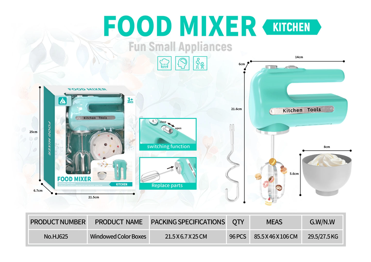 Αυτά τα παιχνίδια μαγειρικής αναπτύσσουν φυσικά τη λεπτή κινητικότητα, τον συντονισμό χεριού–ματιού και το λεξιλόγιο. Μέσα από δημιουργικό παιχνίδι και παιχνίδι ρόλων (role play), τα παιδιά δοκιμάζουν συνταγές, σχεδιάζουν βήματα, μαθαίνουν να συνεργάζονται και να μοιράζονται. Τα διαδραστικά στοιχεία μετατρέπουν το μαγείρεμα σε εκπαιδευτική διασκέδαση· οι ρεαλιστικές λεπτομέρειες υποστηρίζουν τη φαντασία και την αυτοπεποίθηση των μικρών σεφ.