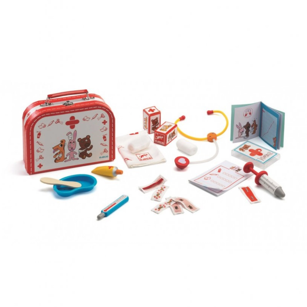Τα ιατρικά σετ εμπνέουν φροντίδα από την εξέταση και τον εμβολιασμό μέχρι την «παιδική κλινική» στο σπίτι. Τα παιδιά ακούν την καρδιά, μετρούν τη θερμοκρασία, καταγράφουν τη διάγνωση και φροντίζουν τον «ασθενή» στο μικρό ιατρείο. Ανθεκτικά και εύκολα στο καθάρισμα υλικά, μελετημένες λεπτομέρειες και πρακτικές βαλιτσούλες εξασφαλίζουν ασφαλές, διαρκές και ουσιαστικό παιχνίδι – ιδανικό για παιχνίδι «ο γιατρός», παιδικά ιατρικά εργαλεία και ανάπτυξη κοινωνικών δεξιοτήτων.