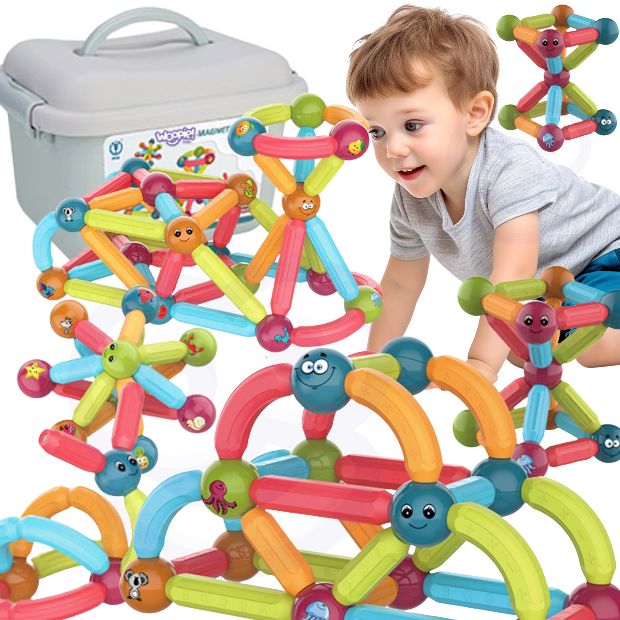 Η μαγνητική έλξη μετατρέπει κάθε κατασκευή σε ένα μικρό θαύμα! Τα μαγνητικά δομικά παιχνίδια για παιδιά συνδυάζουν δημιουργικό παιχνίδι και μάθηση – μαγνητικά κομμάτια, πάνελ, τουβλάκια ή ράβδοι με μπίλιες ενώνονται αμέσως και μένουν σταθερά χάρη στους ασφαλείς μαγνήτες. Δημιουργήστε 2D μωσαϊκά και σταθερές 3D κατασκευές: πύργους, γέφυρες, ζώα και οχήματα – μαγνητικά κατασκευαστικά και δημιουργικά σετ που θα ενθουσιάσουν προσχολικά παιδιά και μαθητές.