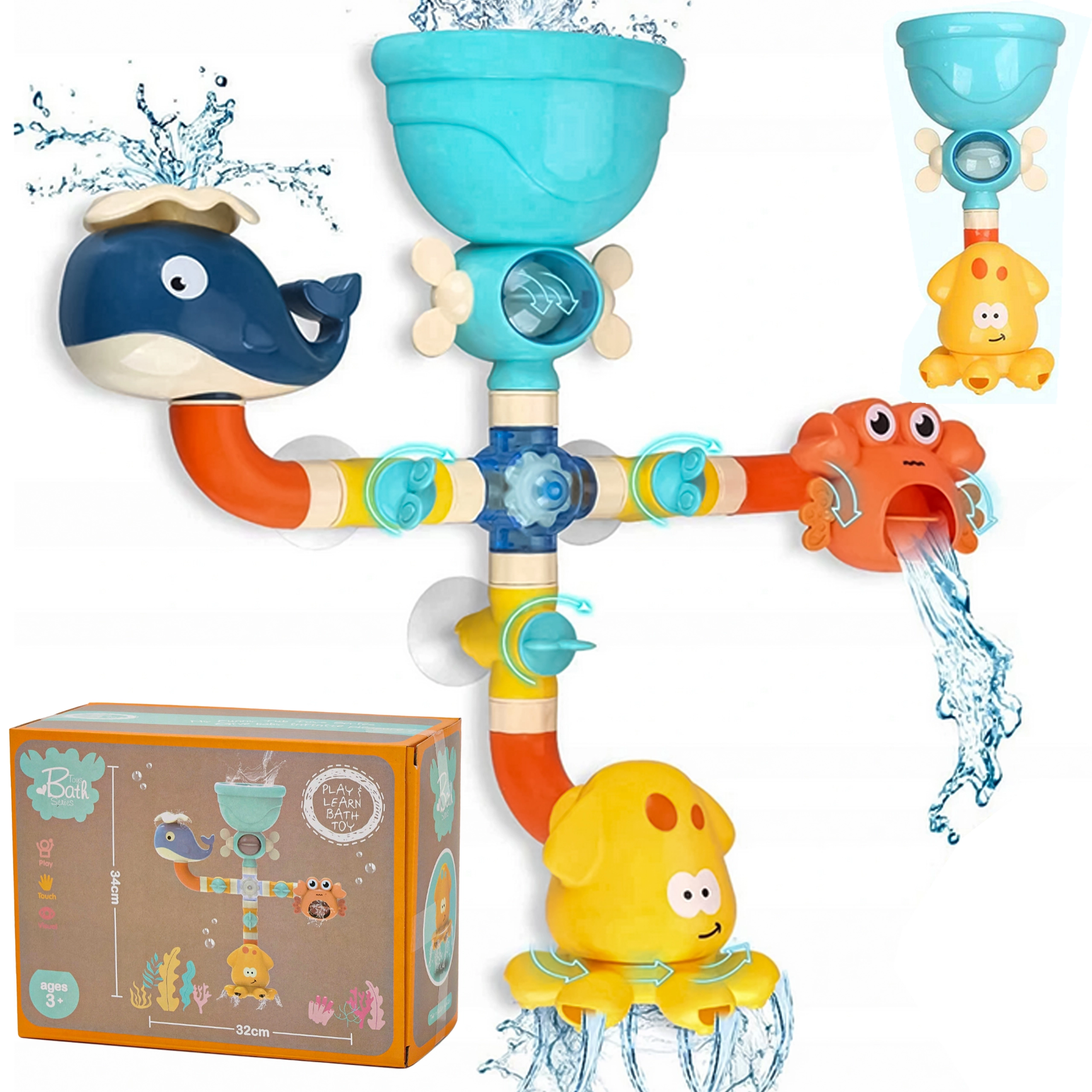 Μάθηση μέσω παιχνιδιού στο μπάνιο: παιχνίδια μπάνιου για παιδιά, αφρώδη αυτοκόλλητα για την μπανιέρα, υδροκολλητά, γράμματα και αριθμοί για το νερό και αφρώδη παζλ μπάνιου βοηθούν τα παιδιά να γνωρίσουν χρώματα και σχήματα, να εξασκήσουν τον συντονισμό χεριού–ματιού και να αναπτύξουν τη φαντασία. Τα πλωτά και ψεκαστήρια παιχνίδια μπάνιου, τα σιλικονούχα παιχνίδια νερού και τα λαστιχένια ζωάκια καλλιεργούν τη λεπτή κινητικότητα και ενθαρρύνουν τη δημιουργική παιχνίδι, ενώ οι νερόμυλοι και τα κυπελλάκια υποστηρίζουν τη λογική σκέψη και την ανακάλυψη του νερού.