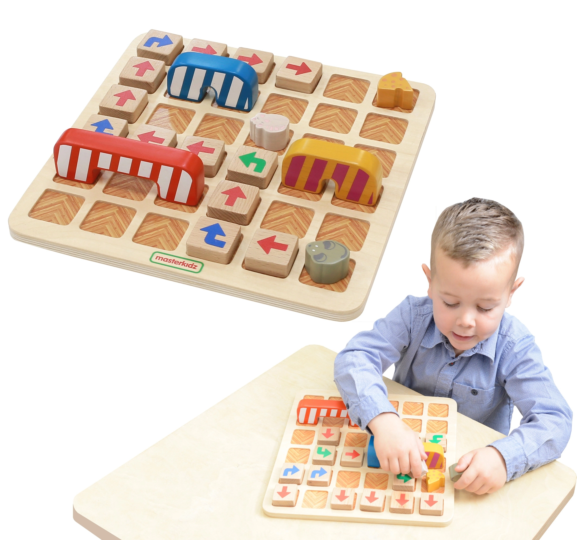 Για τα μικρότερα παιδιά από 1 έτους είναι ιδανικά τα απλά παζλ εισαγωγής και τα περαστήρια, τα παιδιά προσχολικής ηλικίας θα εκτιμήσουν την ταξινόμηση σχημάτων, τα παζλ με αλφάβητο και αριθμούς, ημερολόγια και εκπαιδευτικά ρολόγια, ενώ τα παιδιά σχολικής ηλικίας θα απολαύσουν λογικά παιχνίδια και μωσαϊκά για την ανάπτυξη προμαθηματικών δεξιοτήτων. Θέματα με ζώα, μέσα μεταφοράς ή τη φύση κρατούν την προσοχή και εμπλουτίζουν το λεξιλόγιο. Τα ξύλινα διδακτικά παιχνίδια προσφέρουν διασκεδαστική προετοιμασία για τον παιδικό σταθμό και το σχολείο και οδηγούν τα παιδιά στην αυτονομία και την καθημερινή ανακάλυψη.