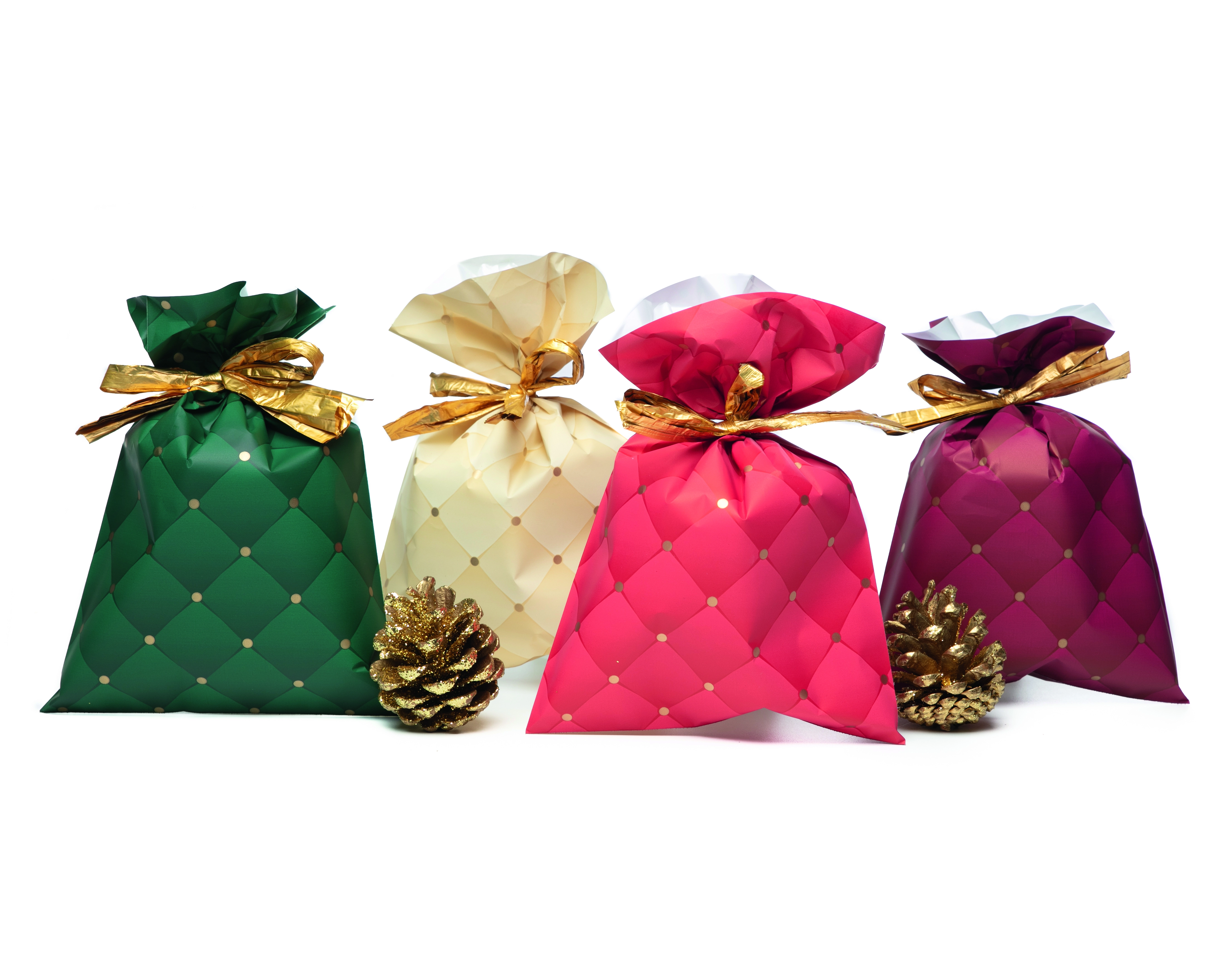 Η λειτουργικότητα και η εμφάνιση πάνε χέρι-χέρι: χάρτινες σακούλες διαφορετικών γραμμαρίων και πλαστικοποιήσεων με ανθεκτικές λαβές από κορδόνι ή κορδέλα, ανθεκτικές σακούλες δώρου με ενισχυμένο πάτο και σακουλάκια με κορδόνι σύσφιξης, αυτοκόλλητο κλείσιμο ή φερμουάρ για ασφαλές τύλιγμα. Οι οικολογικές επιλογές περιλαμβάνουν κραφτ και ανακυκλώσιμα υλικά, καθώς και επαναχρησιμοποιούμενα υφασμάτινα σακουλάκια.