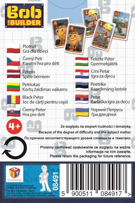 Το παιδικό παιχνίδι Μαύρος Πέτρος με εικόνες του αγαπημένου Μπομπ του Μάστορα είναι ιδανική διασκέδαση για κάθε μικρό «μάστορα». Το παιχνίδι περιλαμβάνει 25 κάρτες που μοιράζονται μεταξύ των παικτών. Στόχος είναι να σχηματίζετε ζευγάρια καρτών και να ξεφορτωθείτε όλες τις κάρτες από το χέρι σας. Νικητής είναι ο παίκτης που δεν έχει τον Μαύρο Πέτρο.