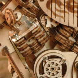 Εντυπωσιάζει με τη ζωντανή λειτουργία του “κινητήρα”, την κίνηση των εμβόλων και το πλούσιο σύνολο λεπτομερειών, συμπεριλαμβανομένων γραναζιών και διακοσμητικών στοιχείων.