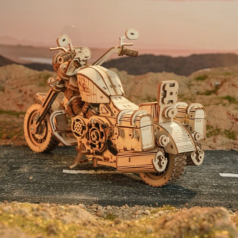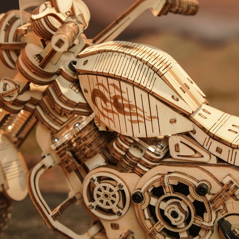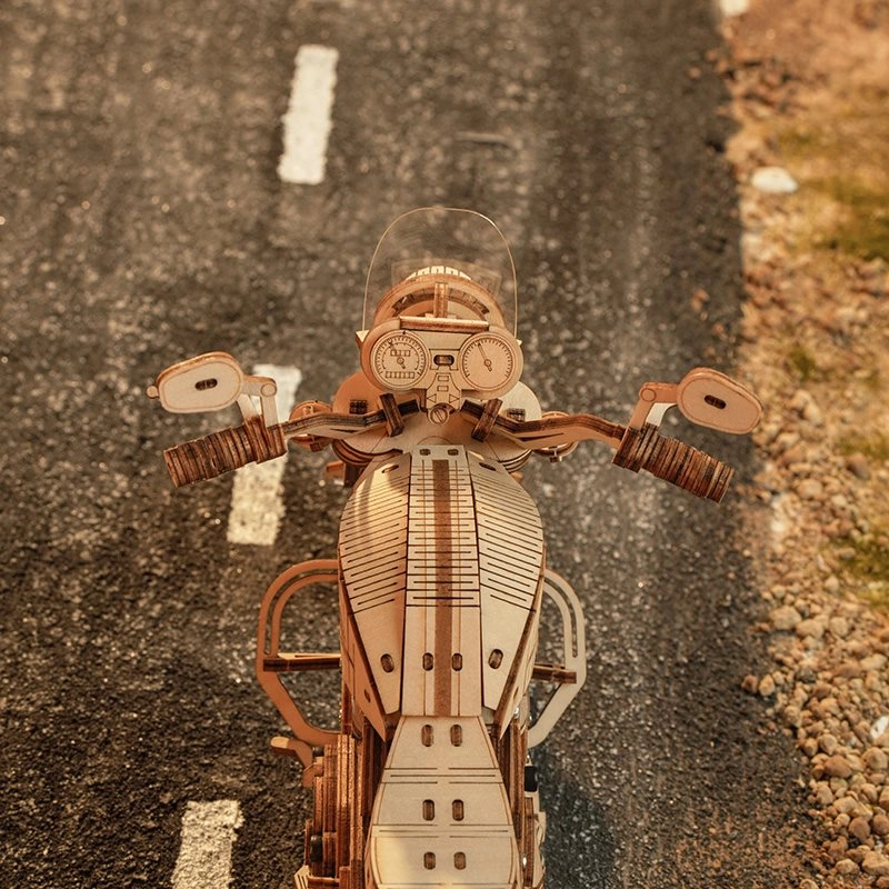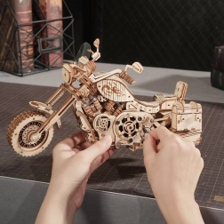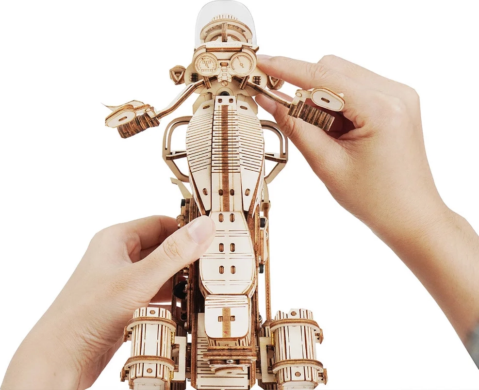 Ανακαλύψτε τη χαρά του μοντελισμού με αυτή την ακριβή 3D κατασκευή μοτοσικλέτας από κόντρα πλακέ. Το μοντέλο προσφέρει κουρδιστό ελατηριωτό μηχανισμό, λειτουργικό σύστημα διεύθυνσης, κινούμενα έμβολα και εργαζόμενη μπροστινή ανάρτηση. Με 420 κομμάτια και μεσαίο επίπεδο δυσκολίας θα απολαύσετε 4–5 ώρες διασκέδασης· μετά τη συναρμολόγηση η μοτοσικλέτα είναι ικανή για αυτόνομη κίνηση και εντυπωσιάζει με τον διακοσμητικό σχεδιασμό και τις μικρές αποθηκευτικές θήκες δίπλα στη σέλα.