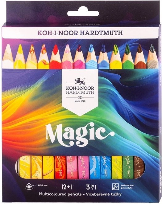 Οι ξυλομπογιές KOH-I-NOOR Magic είναι ιδανικές για δημιουργικό σχέδιο, σκίαση και διασταύρωση γραμμών. Χάρη στον μοναδικό πυρήνα τους δημιουργούν πολύχρωμες γραμμές που μεταβαίνουν ομαλά από μία απόχρωση σε άλλη, προσδίδοντας στα σχέδια πλαστικό 3D αποτέλεσμα. Το τριγωνικό εργονομικό σχήμα εξασφαλίζει άνετη λαβή και καλύτερο έλεγχο κατά την εργασία.