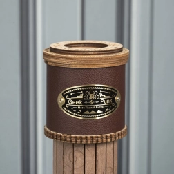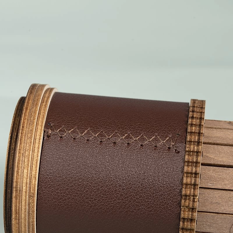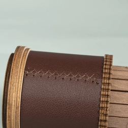 Ο ξύλινος σωλήνας με δερμάτινη λωρίδα και μεταλλική πλακέτα χαρίζει στο μοντέλο vintage εμφάνιση που θα στολίσει κάθε εσωτερικό χώρο.
