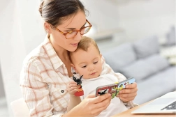 Μικρό εικονογραφημένο βιβλιαράκι (10 × 10 × 1,5 cm) που υποστηρίζει τις πρώιμες αναγνωστικές συνήθειες και προσαρμόζεται εύκολα σε καρότσι ή τσάντα.