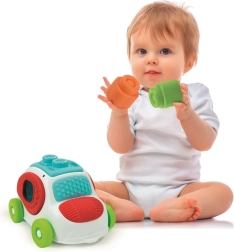 Το πλαστικό αυτοκινητάκι λειτουργεί ως πρακτικό κουτί αποθήκευσης, ώστε τα τουβλάκια να μην χάνονται. Το παιχνίδι είναι ιδανικό για την πρώιμη ανάπτυξη και την ασφαλή αισθητηριακή διέγερση – τα τουβλάκια μπορούν επίσης να χρησιμοποιηθούν στο νερό και να πλυθούν στο πλυντήριο πιάτων, διευκολύνοντας την υγιεινή και τη φροντίδα.