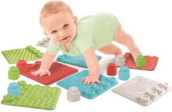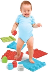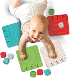 Τέσσερα χρωματιστά πατάκια με ξεχωριστά ανάγλυφα ενθαρρύνουν τα παιδιά να εξερευνούν μέσω αφής, να μπουσουλάνε και να κάνουν τα πρώτα τους βήματα ισορροπίας.
