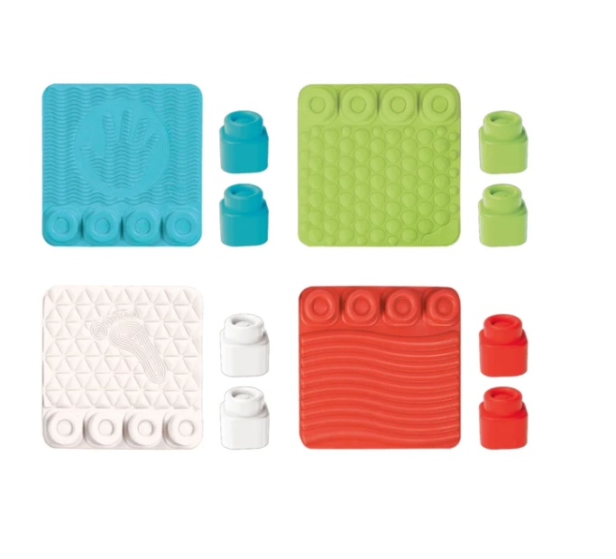 Τα αισθητηριακά πατάκια Soft Clemmy λειτουργούν ως σταθερή βάση για κατασκευή με μαλακά τουβλάκια αλλά και ως απτική διαδρομή για μπουσούλημα και τα πρώτα βηματάκια. Τα ποικίλα ανάγλυφα μοτίβα – κυματισμοί, κουκκίδες ή «λεπιδωτά» σχέδια – προσκαλούν τα παιδιά να εξερευνούν, να πιέζουν και να πατούν, αναπτύσσοντας φυσικά τον συντονισμό και την ισορροπία.