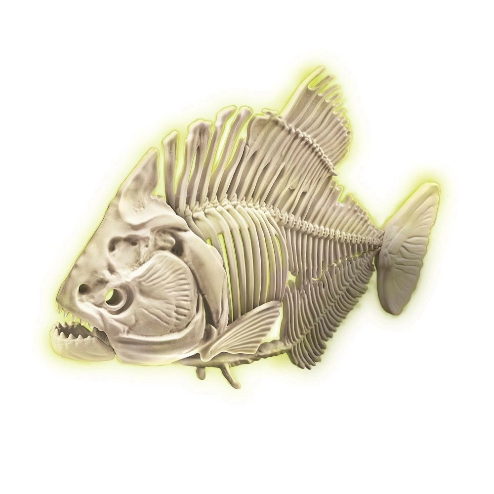 Εξερευνήστε τον κόσμο της παλαιοντολογίας βήμα προς βήμα. Με σφυράκι και καλέμι επεξεργαστείτε προσεκτικά το μπλοκ εδάφους και αποκαλύψτε τα οστά, από τα οποία θα συναρμολογήσετε έναν ρεαλιστικό σκελετό πυράνας. Χάρη στο ειδικό φθορίζον υλικό, ο σκελετός μετά από έκθεση στο φως λάμπει στο σκοτάδι, προσδίδοντας στην ανακάλυψη μια μοναδική ατμόσφαιρα.