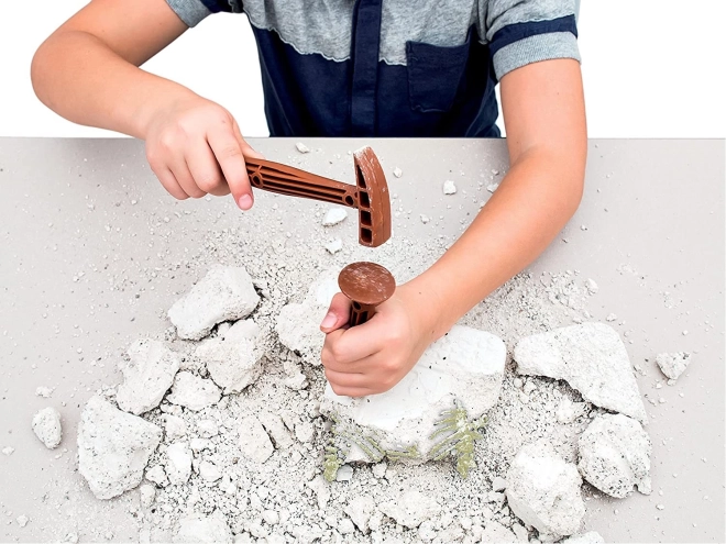 Αυτό το εκπαιδευτικό σετ της σειράς Science & Play προσφέρει μια αυθεντική εμπειρία παλαιοντολογικής ανασκαφής. Στο μπλοκ “πετρώματος” θα βρεις μέρη δύο λεπτομερών σκελετών, τα οποία θα απελευθερώσεις προσεκτικά με σφυράκι και καλέμι και στη συνέχεια θα συναρμολογήσεις σε εντυπωσιακά μοντέλα. Το ειδικό φθορίζον υλικό απορροφά το φυσικό φως και μετά λάμπει στο σκοτάδι, ενισχύοντας το εφέ εντυπωσιασμού και παρακινώντας για περαιτέρω εξερεύνηση.