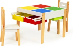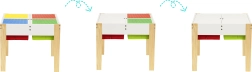 Δύο αποσπώμενα τμήματα της επιφάνειας προσφέρουν λεία πλευρά για ζωγραφική και χρωματιστές βάσεις κατάλληλες για τουβλάκια. Προσαρμόζετε εύκολα το τραπέζι για διαφορετικά παιχνίδια ταυτόχρονα.