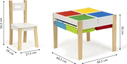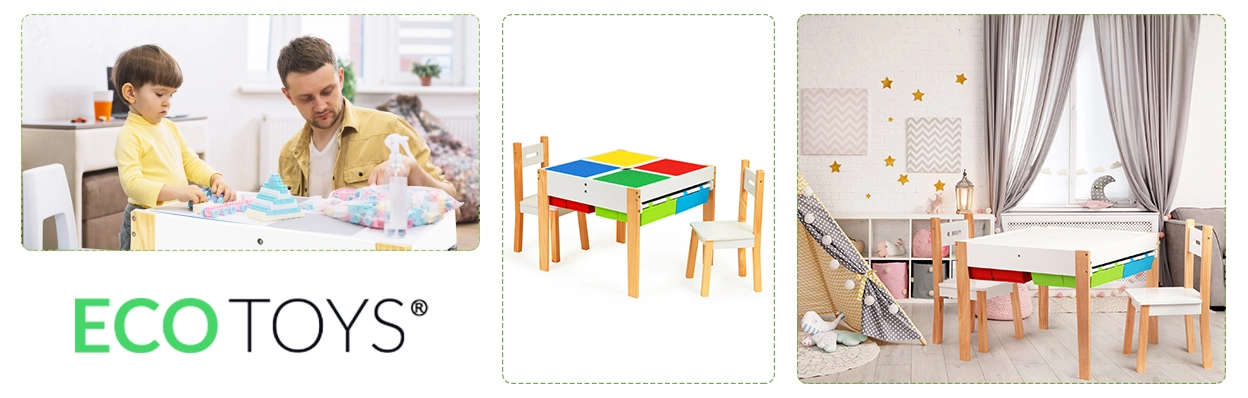 Δημιουργήστε για τα παιδιά έναν δικό τους δημιουργικό χώρο με το σετ ECOTOYS, που συνδυάζει τραπέζι παιχνιδιού και αποθήκευση σε ένα. Τα στιβαρά πόδια από πεύκο και η ανθεκτική επιφάνεια MDF εξασφαλίζουν σταθερότητα και μεγάλη αντοχή. Χάρη στον καθαρό σκανδιναβικό σχεδιασμό, το σετ ταιριάζει τέλεια σε παιδικό δωμάτιο, playroom ή αίθουσα αναμονής.