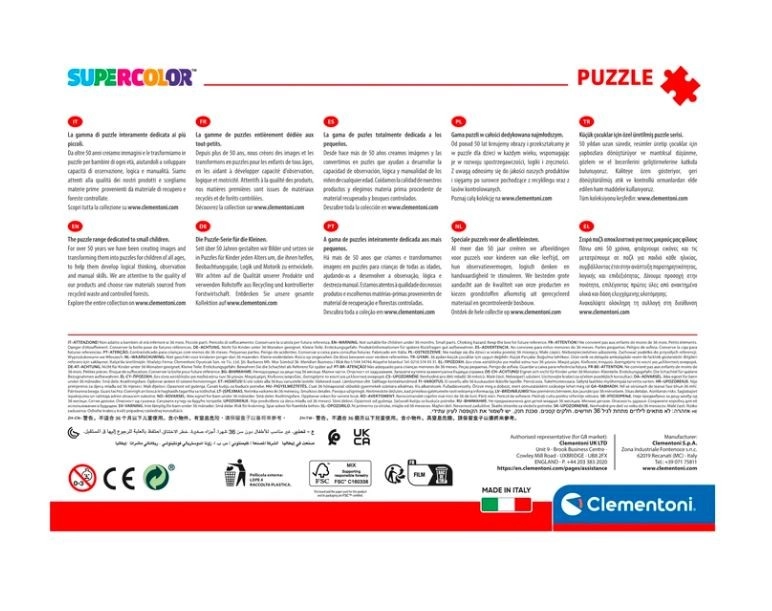 Η ολοκληρωμένη εικόνα μεγέθους 48,5 × 33,5 cm ταιριάζει ιδανικά για διακόσμηση παιδικού δωματίου ή ως πρωτότυπο δώρο για φίλους. Ο κατασκευαστής δίνει έμφαση στην οικολογία – το παζλ είναι φτιαγμένο από ανακυκλωμένα υλικά χωρίς επιβλαβείς ουσίες και προσφέρει υπηρεσία αντικατάστασης/εύρεσης χαμένων κομματιών.