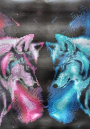 Διαδικασία: Η επάνω πλευρά του καμβά είναι επικαλυμμένη με κόλλα και καλυμμένη με διαφανή μεμβράνη, την οποία αφαιρείτε σταδιακά όσο εφαρμόζετε τα πετραδάκια. Ο καμβάς περιλαμβάνει σύμβολα που αντιστοιχούν στο εκάστοτε σακουλάκι με τα πετραδάκια.