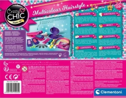 Ανακαλύψτε τον δημιουργικό κόσμο των χτενισμάτων με το στούντιο μαλλιών Crazy Chic της CLEMENTONI. Χάρη στην καινοτόμα πρέσα για χρωματισμό μαλλιών, τα παιδιά δημιουργούν εύκολα μοδάτες πολύχρωμες τούφες, ουράνιο τόξο μπούκλες και πρωτότυπα χτενίσματα. Απλώς τοποθετήστε τις χρωματικές ταμπλέτες στις ειδικές θήκες και μεταφέρετε το χρώμα στα μαλλιά – γρήγορο, διασκεδαστικό και ασφαλές στούντιο styling στο σπίτι.