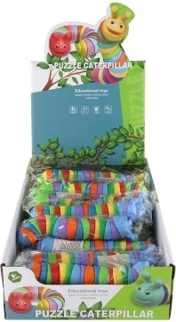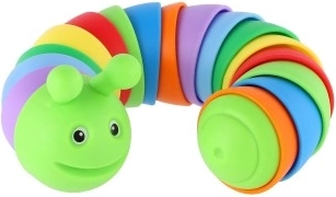Η εύκαμπτη πολύχρωμη κάμπια θα γίνει το αγαπημένο παιχνίδι των παιδιών σας. Χάρη στον φιλικό σχεδιασμό και τα πολύχρωμα τμήματα, είναι ιδανική για την ανάπτυξη της λεπτής κινητικότητας και της οπτικής αντίληψης. Η κάμπια μπορεί να λυγίζει εύκολα προς όλες τις κατευθύνσεις, προσφέροντας διασκέδαση και ενισχύοντας τη δημιουργικότητα.