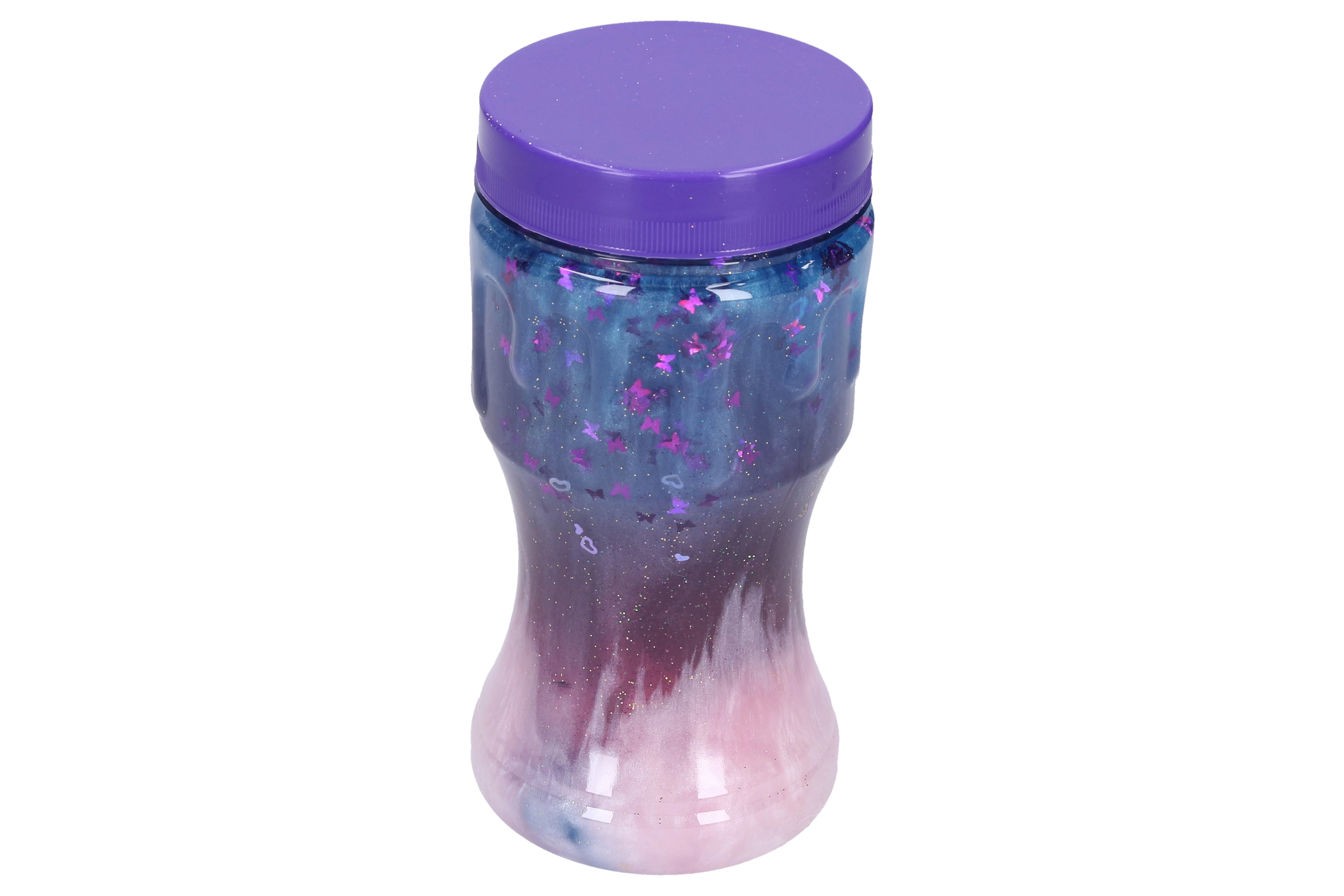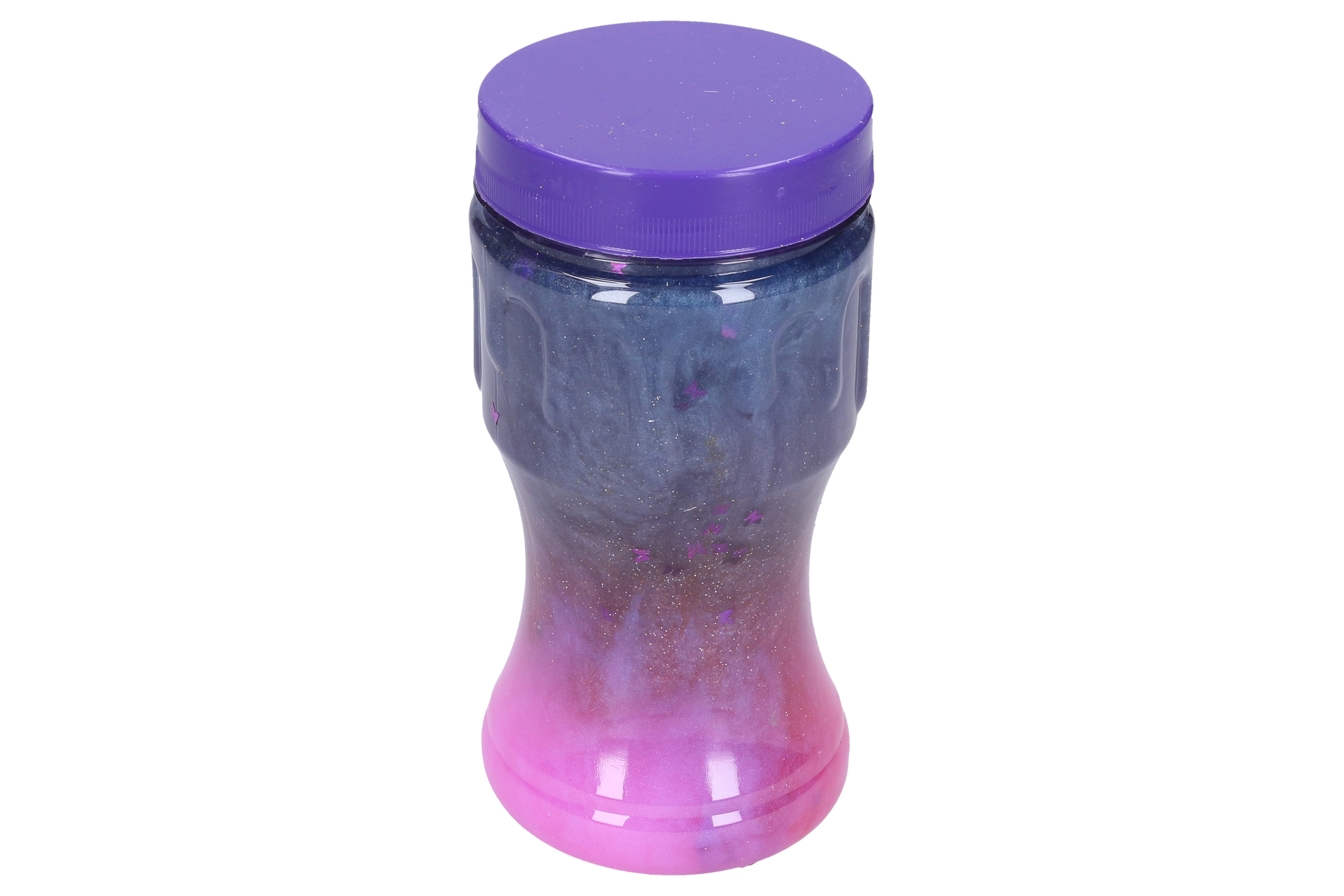 Το γαλαξιακό σλάιμ με γκλίτερ προσφέρει υπέροχο μίγμα χρωμάτων που δημιουργεί εφέ έναστρου ουρανού. Χάρη στα λεπτά γκλίτερ και τα κονφετί, κατά το ζούληγμα και τέντωμα αλλάζουν η όψη και η υφή, ενισχύοντας το απτικό βίωμα και τη δημιουργικότητα. Ιδανικό για παιδιά από 5 ετών και ενήλικες για αποφόρτιση της έντασης και σύντομα διαλείμματα χαλάρωσης.