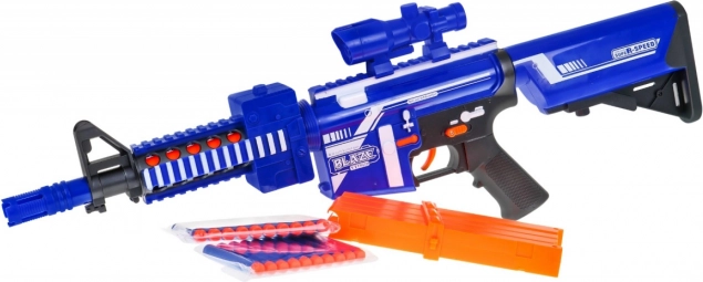 Απολαύστε δράση με τον παιδικό blaster BLAZE STORM με μπαταρίες. Η πλήρως ηλεκτρική κίνηση εξασφαλίζει ομαλή λειτουργία και σταθερή απόδοση, ενώ κάθε πάτημα της σκανδάλης εκτοξεύει ένα βέλος. Η μακριά κάννη με δύο κυλίνδρους σταθεροποίησης βοηθά στη διατήρηση της πορείας πτήσης και το αποσπώμενο τακτικό σκοπευτικό διευκολύνει τη στόχευση.