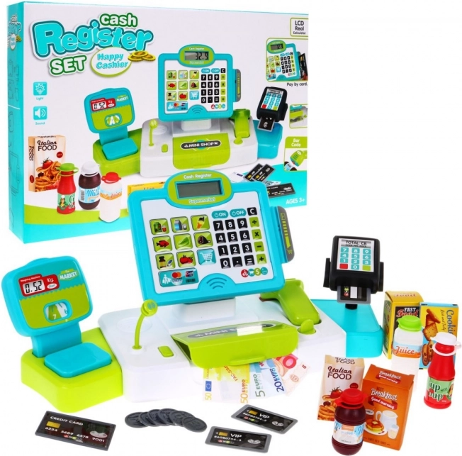 Το ταμείο διαθέτει σαρωτή με εφέ και ζυγαριά, βοηθώντας τα παιδιά να συμμετέχουν σε διαδραστικό παιχνίδι και προσομοίωση αγορών.