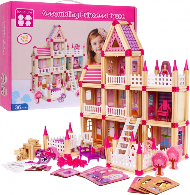 Αυτό το ξύλινο δομικό σετ είναι ιδανικό για μικρούς οικοδόμους από 3 ετών. Το σετ περιλαμβάνει 298 κομμάτια, που επιτρέπουν τη δημιουργία διαφόρων κατασκευών και ενθαρρύνουν το δημιουργικό παιχνίδι. Τα παιδιά μπορούν να χρησιμοποιήσουν κομμάτια με θέματα δέντρων, φιγούρες πριγκιπισσών ή μικρά αυτοκίνητα, δημιουργώντας τις δικές τους ιστορίες.