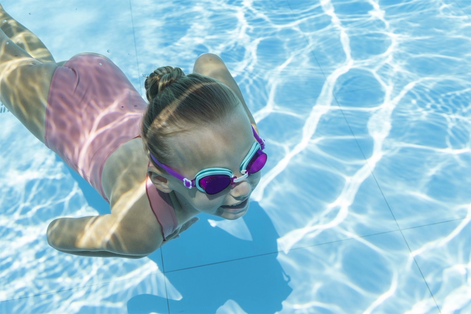 Η εργονομική κατασκευή με ρυθμιζόμενη γέφυρα μύτης και σιλικόνινο λουράκι επιτρέπει ακριβή προσαρμογή στο σχήμα του κεφαλιού του παιδιού. Οι φακοί είναι ανθεκτικοί σε κρούσεις και διαθέτουν UV προστασία, κατάλληλοι τόσο για κλειστές πισίνες όσο και για τον ήλιο. Η ροζ απόχρωση δίνει παιχνιδιάρικη εμφάνιση σε κάθε κολύμπι.