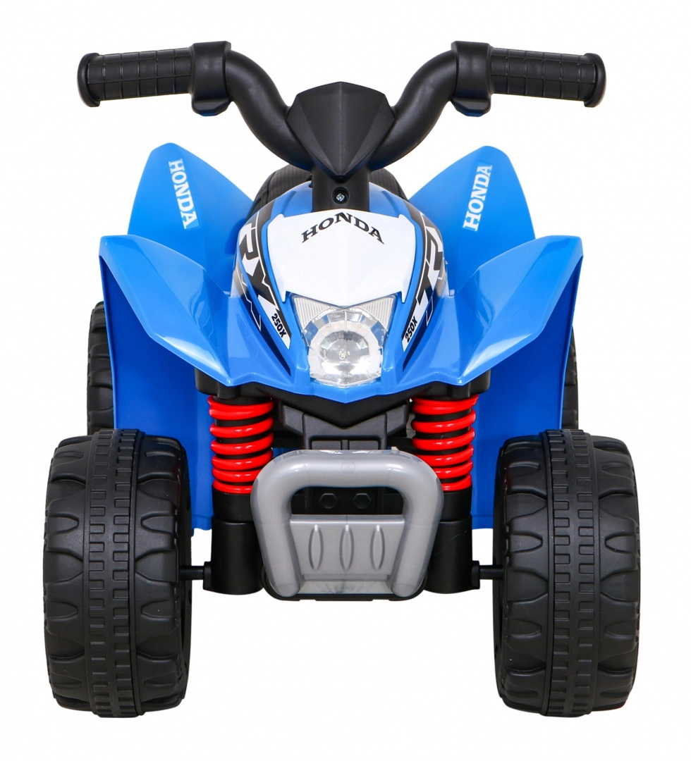 Στυλάτο παιδικό τετράτροχο Honda 250X TRX με μπαταρία, προσφέρει ασφαλή διασκέδαση για τους μικρούς οδηγούς. Διαθέτει αθόρυβο κινητήρα 1×30 W, μπροστινό LED φωτισμό, κόρνα και άνετη σέλα από οικολογικό δέρμα. Η ελαφριά και ανθεκτική κατασκευή με πλαστικούς τροχούς εξασφαλίζει εύκολο χειρισμό στο σπίτι και σε εξωτερικούς χώρους.