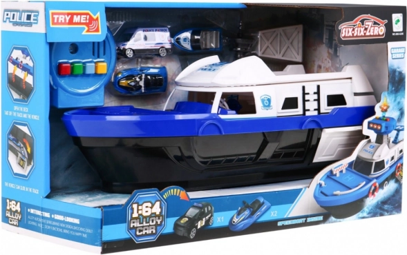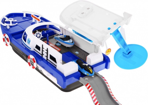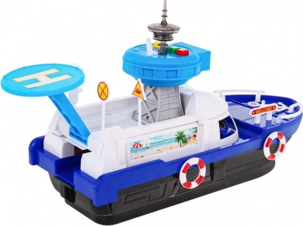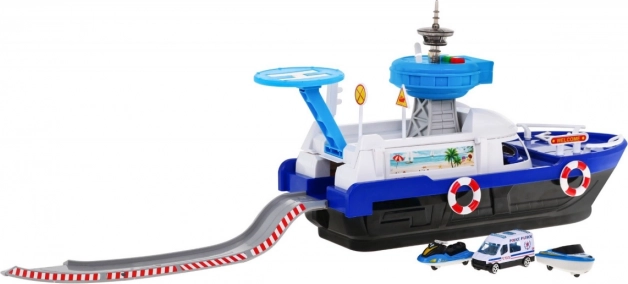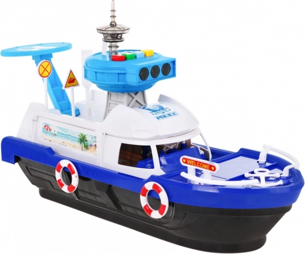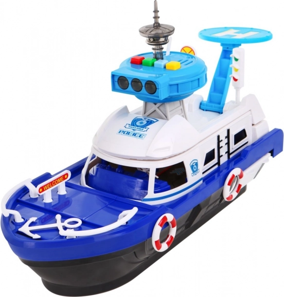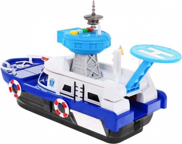 Ζήστε διασκεδαστικές περιπέτειες με το διαδραστικό αστυνομικό πλοίο για παιδιά από 3 ετών. Το πλοίο είναι εξοπλισμένο με φωτεινά και ηχητικά χαρακτηριστικά που προσδίδουν ρεαλιστικά στοιχεία παιχνιδιού. Χάρη στον πύργο ελέγχου με ελικοδρόμιο και τον πίνακα με ηχητικούς και φωτεινούς συναγερμούς, προσφέρει μια ανεπανάληπτη εμπειρία.