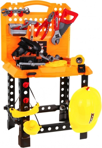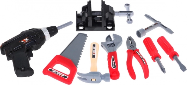 Περιλαμβάνει ευρεία γκάμα εργαλείων όπως τρυπάνι, σφυρί, πριόνι και άλλα, επιτρέποντας στα παιδιά να προσομοιώνουν πραγματικές χειρονακτικές εργασίες.