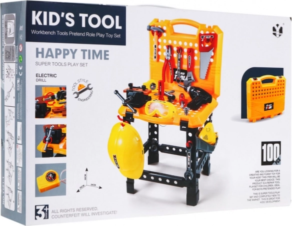 Αυτό το παιδικό σετ εργαλείων είναι ιδανικό για μικρούς λάτρεις των κατασκευών. Περιλαμβάνει 100 στοιχεία, μεταξύ των οποίων ρεαλιστικά παιχνίδια όπως τρυπάνι, σφυρί, μέγγενη, πριόνι και άλλα. Το σετ είναι κατάλληλο για παιδιά από 3 ετών.