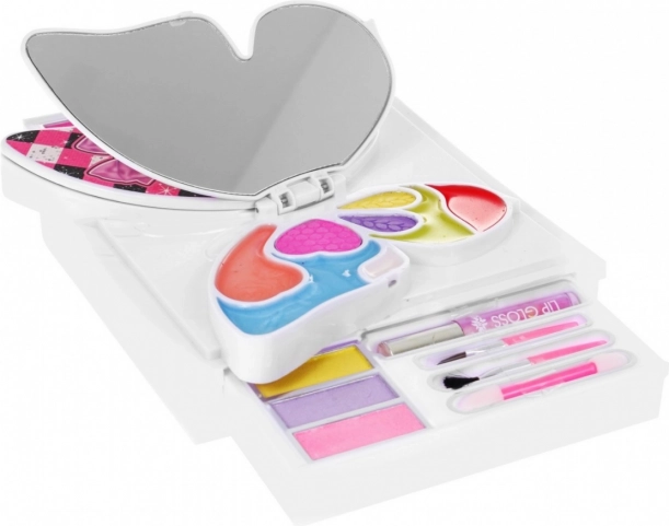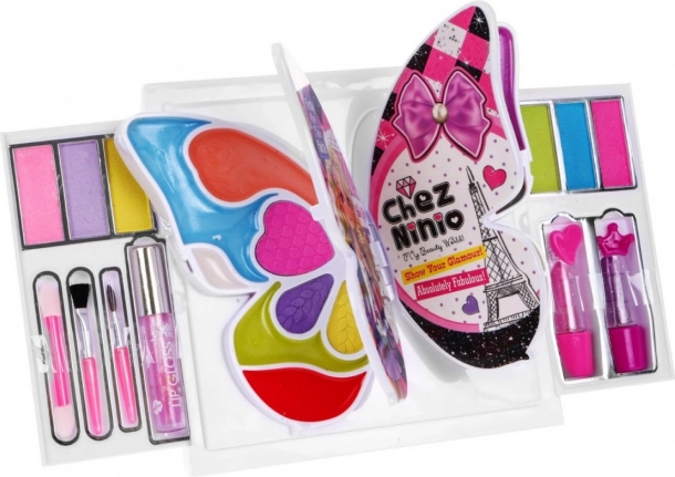 Αναδιπλούμενο σετ μακιγιάζ για παιδιά με θέμα πεταλούδα που προσφέρει πολύχρωμη παλέτα σκιών ματιών, γκλος και κραγιόν, δύο καθρεφτάκια και πινέλα. Είναι κατασκευασμένο από πιστοποιημένες, ποιοτικές πρώτες ύλες, διαθέτει πιστοποίηση CE και είναι κατάλληλο από 3 ετών – ιδανικό για δημιουργικό παιχνίδι και για το ταξίδι.