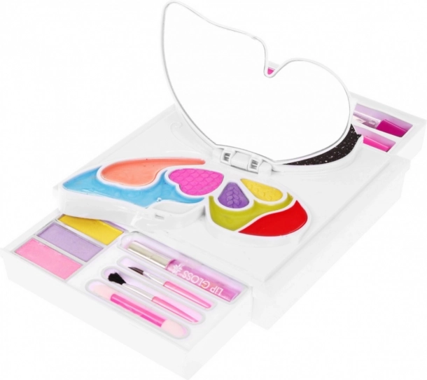Πολύχρωμες σκιές ματιών, γκλος χειλιών και δύο κραγιόν αφήνουν χώρο στη φαντασία. Το σετ προορίζεται για παιδιά και είναι φτιαγμένο από πιστοποιημένες, ποιοτικές πρώτες ύλες.