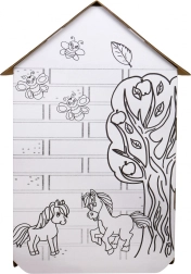 Ανακαλύψτε το ευρύχωρο χάρτινο σπιτάκι XXL που τα παιδιά μπορούν να συναρμολογήσουν και να διακοσμήσουν σύμφωνα με τις δικές τους ιδέες. Οι καθαρές λευκές επιφάνειες με μαύρα περιγράμματα αλόγων και φύσης προσκαλούν για ζωγραφική με ξυλομπογιές, μαρκαδόρους ή κηρομπογιές (τα αξεσουάρ δεν περιλαμβάνονται).
