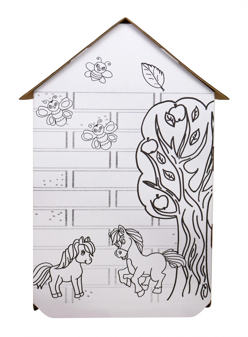 Το μεγάλο χάρτινο σπιτάκι για χρωμάτισμα προσφέρει σε παιδιά από 3 ετών ώρες δημιουργικής διασκέδασης. Διαθέτει ανοιγόμενα παράθυρα και πόρτες, σχέδια με ζώα για χρωμάτισμα και συναρμολογείται εύκολα χωρίς εργαλεία. Καλλιεργεί την δημιουργικότητα, τη λεπτή κινητικότητα και τη φαντασία στο παιχνίδι εσωτερικού χώρου.