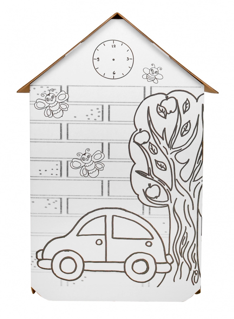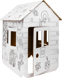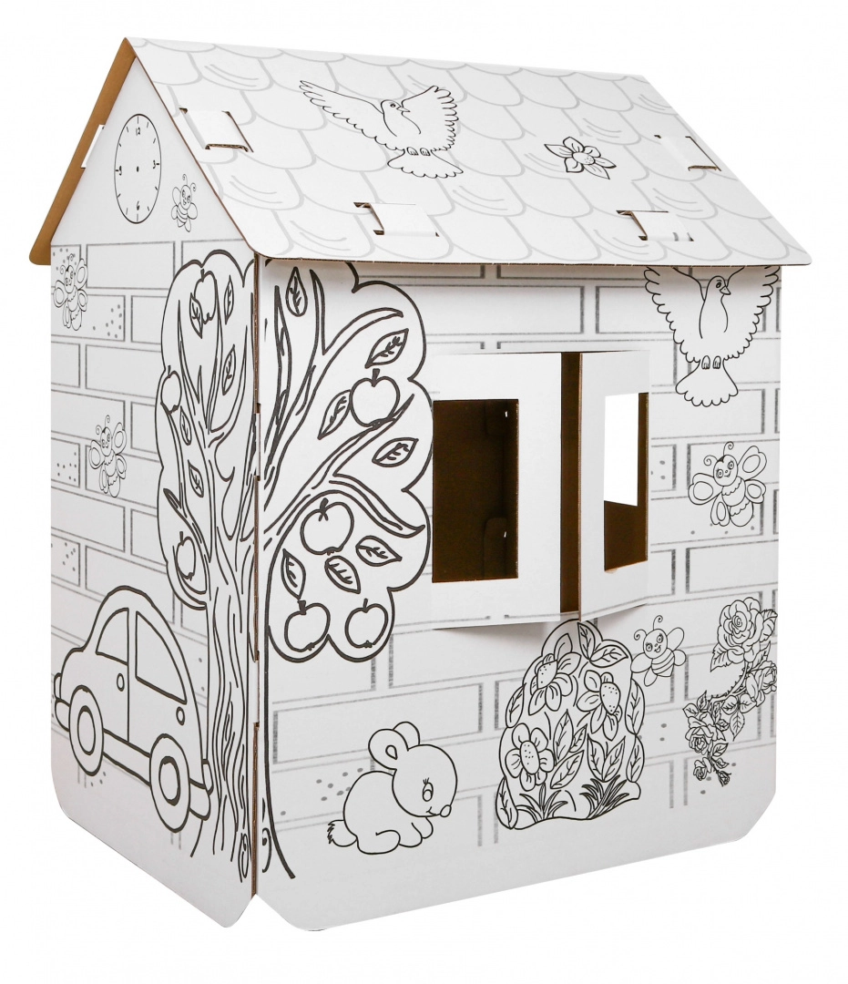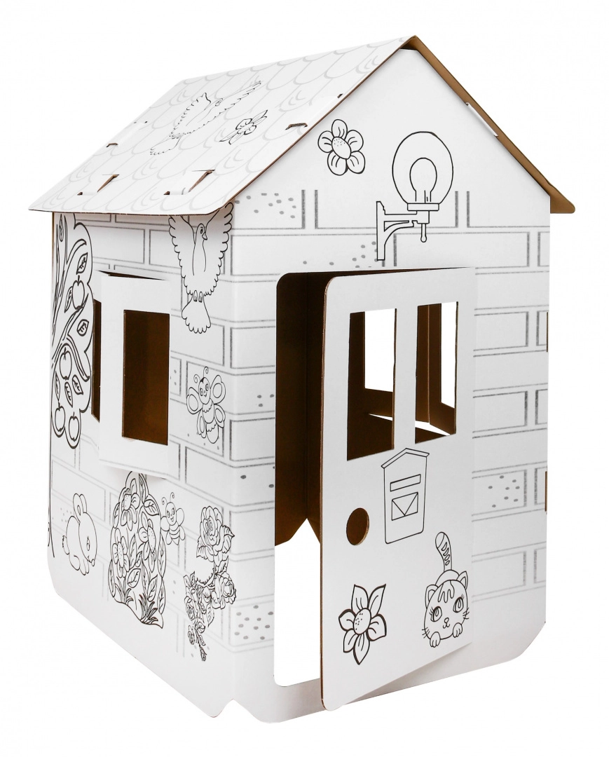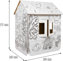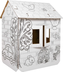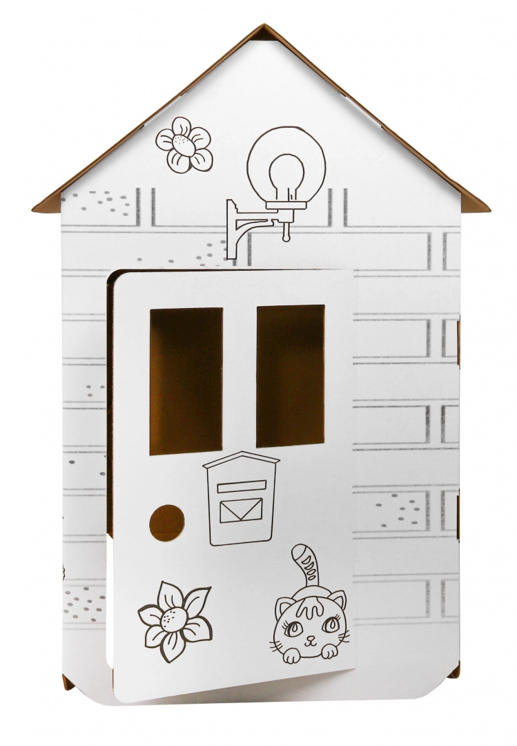 Μεγάλο χάρτινο σπιτάκι για χρωμάτισμα για παιδιά από 3 ετών, με παράθυρα και πόρτες που ανοίγουν, για άφθονη διασκέδαση και ανάπτυξη δημιουργικότητας. Η λευκή επιφάνεια με μαύρα περιγράμματα προσκαλεί σε ζωγραφική και διακόσμηση, ώστε τα παιδιά να δημιουργήσουν το δικό τους μοναδικό σπιτάκι και να απολαύσουν φανταστικό παιχνίδι στο σπίτι ή στο νηπιαγωγείο.