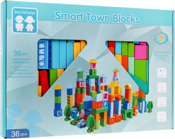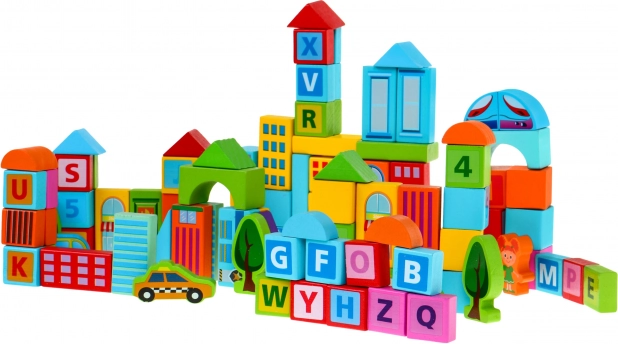Ανακαλύψτε τη μαγεία του κλασικού παιχνιδιού σε σύγχρονη εκδοχή: ξύλινα τουβλάκια «Πόλη» με 100 τεμάχια για παιδιά από 3 ετών. Κατασκευασμένα από ποιοτικό ξύλο, με ασφαλή χρώματα και λεία άκρα, ενισχύουν την δημιουργικότητα, τη λεπτή κινητικότητα και τη χωρική φαντασία. Ποικίλοι σχήματα και χρώματα και συμπεριλαμβανόμενη εικονική έμπνευση προσκαλούν σε κατασκευές σπιτιών, πύργων και οχημάτων.