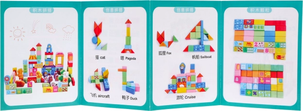 Τα ξύλινα τουβλάκια είναι από τα πιο αγαπημένα παιχνίδια διαχρονικά. Αυτό το πλούσιο σετ περιλαμβάνει 100 προσεκτικά επεξεργασμένα κομμάτια σε διάφορα χρώματα και σχήματα, χάρη στα οποία τα παιδιά μπορούν εύκολα να χτίσουν πόλη, γέφυρες ή πύργους. Τα περισσότερα κομμάτια είναι διακοσμημένα με μοτίβα ζώων, γράμματα και σχήματα, που υποστηρίζουν φυσικά τη μάθηση μέσα από το παιχνίδι.