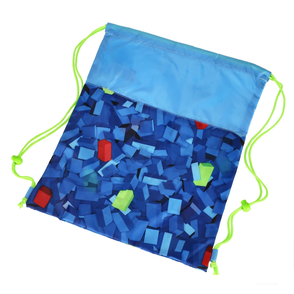 Ελαφρύς και πρακτικός σάκος για παπούτσια ή γυμναστική με μοτίβο πολύχρωμων κύβων από τη μάρκα ST. RIGHT. Χάρη στα διπλά πλαϊνά κορδόνια μεταφέρεται άνετα σαν σακίδιο ή στον ώμο και κλείνει εύκολα με τράβηγμα. Διαστάσεις 34 × 43 cm, ιδανικός για το σχολείο και τον ελεύθερο χρόνο. Ανθεκτικό υλικό, γρήγορο σφίξιμο με κορδόνια και πολυλειτουργική χρήση για παιδιά και εφήβους.