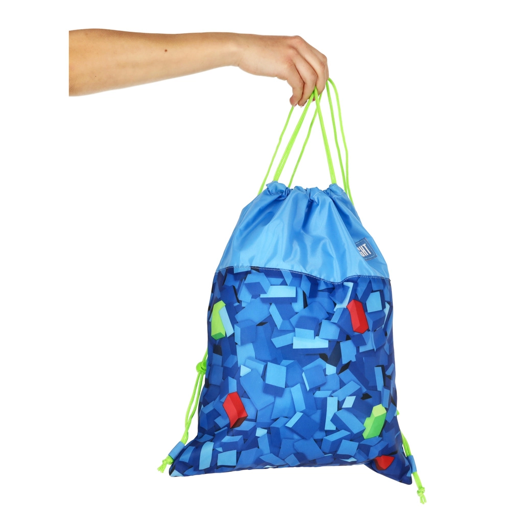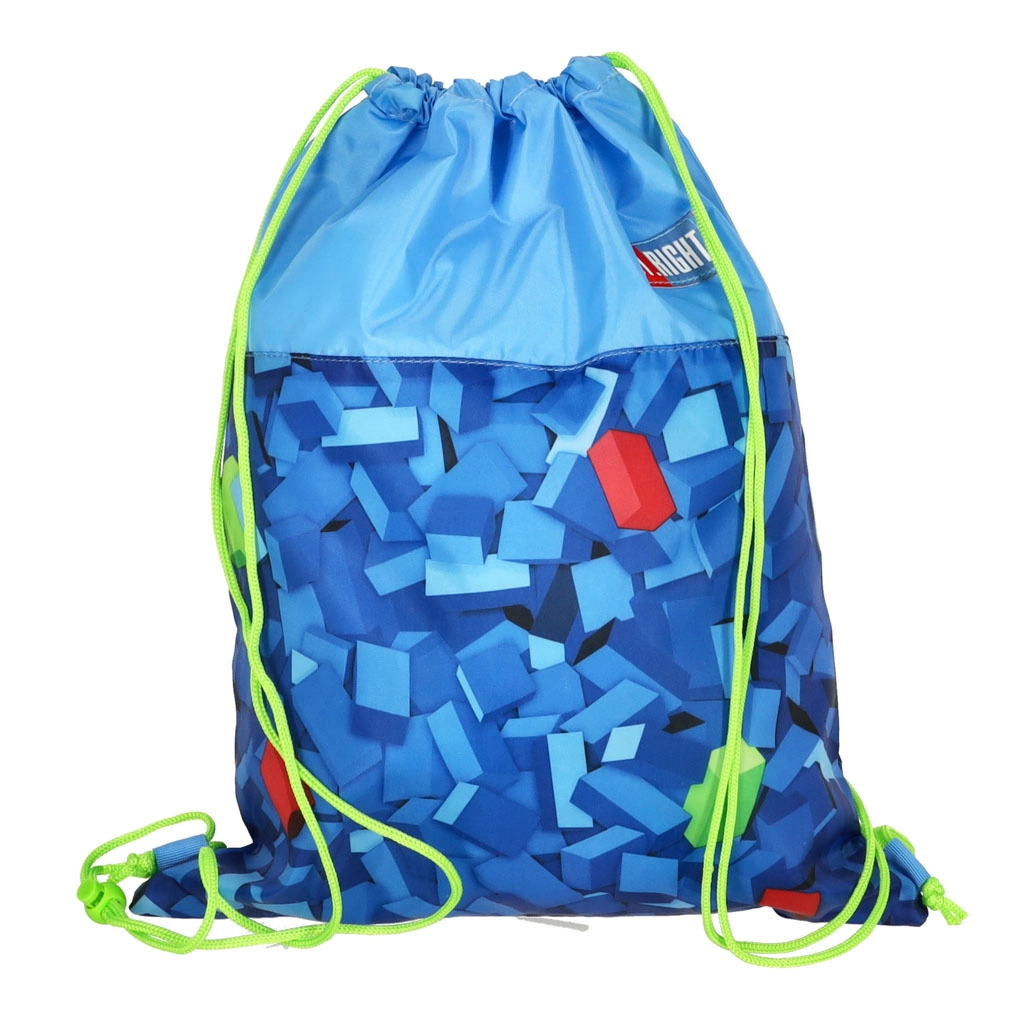 Στυλάτος σάκος παπουτσιών ST. RIGHT σε μπλε απόχρωση με γεωμετρικό μοτίβο κύβων που συνδυάζει μοντέρνο design και καθημερινή πρακτικότητα. Οι φθορίζοντες κορδόνια ξεχωρίζουν και διευκολύνουν τη μεταφορά και το γρήγορο κλείσιμο. Εξαιρετική επιλογή για σχολείο, δραστηριότητες, γυμναστική ή σύντομες εκδρομές.