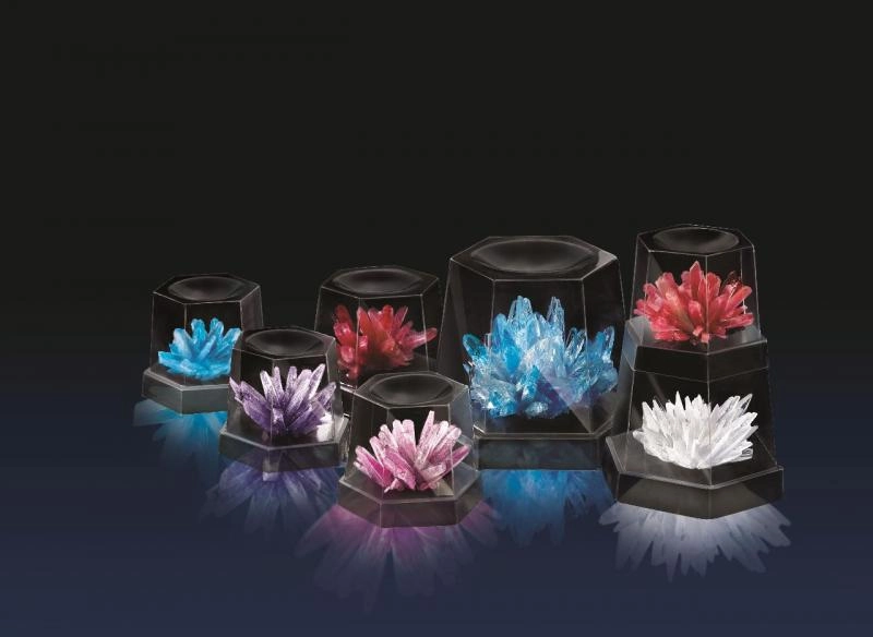 Με αυτό το επιστημονικό σετ τα παιδιά μετατρέπονται σε μικρούς χημικούς: ετοιμάζουν το διάλυμα, αφήνουν τους κρυστάλλους να αναπτυχθούν και στη συνέχεια τους χρωματίζουν σε ζωηρές αποχρώσεις. Το μέγεθος, το σχήμα και το τελικό χρώμα αλλάζουν ανάλογα με τις πειραματικές συνθήκες, ώστε κάθε αποτέλεσμα να είναι μοναδικό. Χάρη στη διάφανη βιτρίνα, οι έτοιμοι κρύσταλλοι εκτίθενται εύκολα και παραμένουν συνεχώς ορατοί.