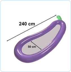 Το φουσκωτό στρώμα σε σχήμα μελιτζάνας προσφέρει μια μοναδική εμπειρία στο νερό. Χάρη στον έντονο σχεδιασμό του, τραβά αμέσως την προσοχή και προσφέρει διασκέδαση για παιδιά και ενήλικες. Κυριαρχούν οι μωβ αποχρώσεις με πράσινο κοτσάνι, που θυμίζουν πραγματική μελιτζάνα.