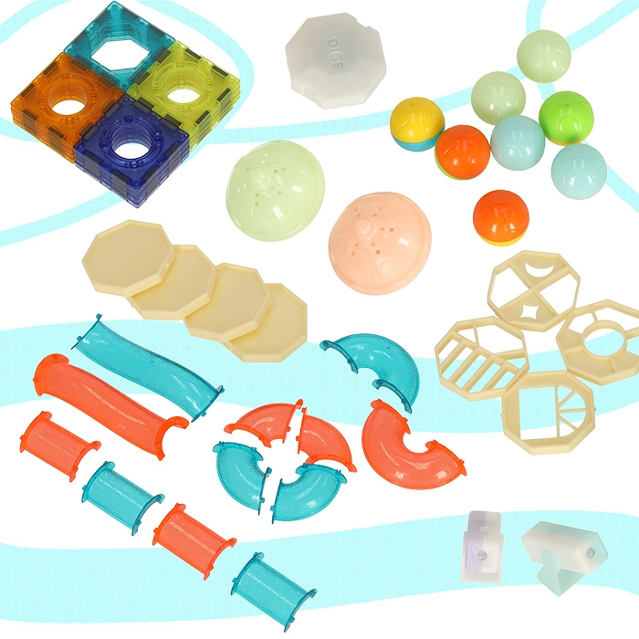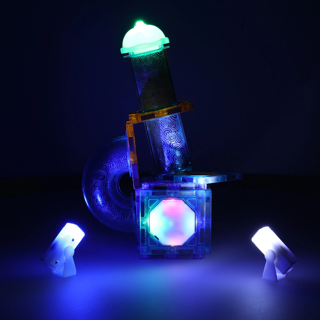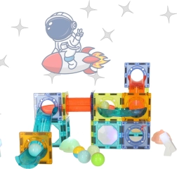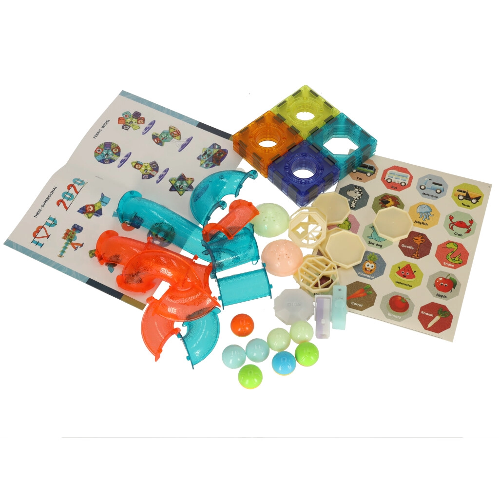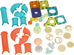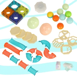 Το σετ προσφέρει ευέλικτες κατασκευές σε 2D και 3D: από απλά σχήματα έως σύνθετες πίστες. Τα μαγνητικά τετράγωνα εξασφαλίζουν σταθερή δομή, ενώ οι σωλήνες και τα τούνελ κουμπώνουν εύκολα. Χάρη στα φωτιζόμενα κομμάτια και τις μπίλιες, κάθε κατάβαση γίνεται μια διασκεδαστική, οπτικά εντυπωσιακή παράσταση.