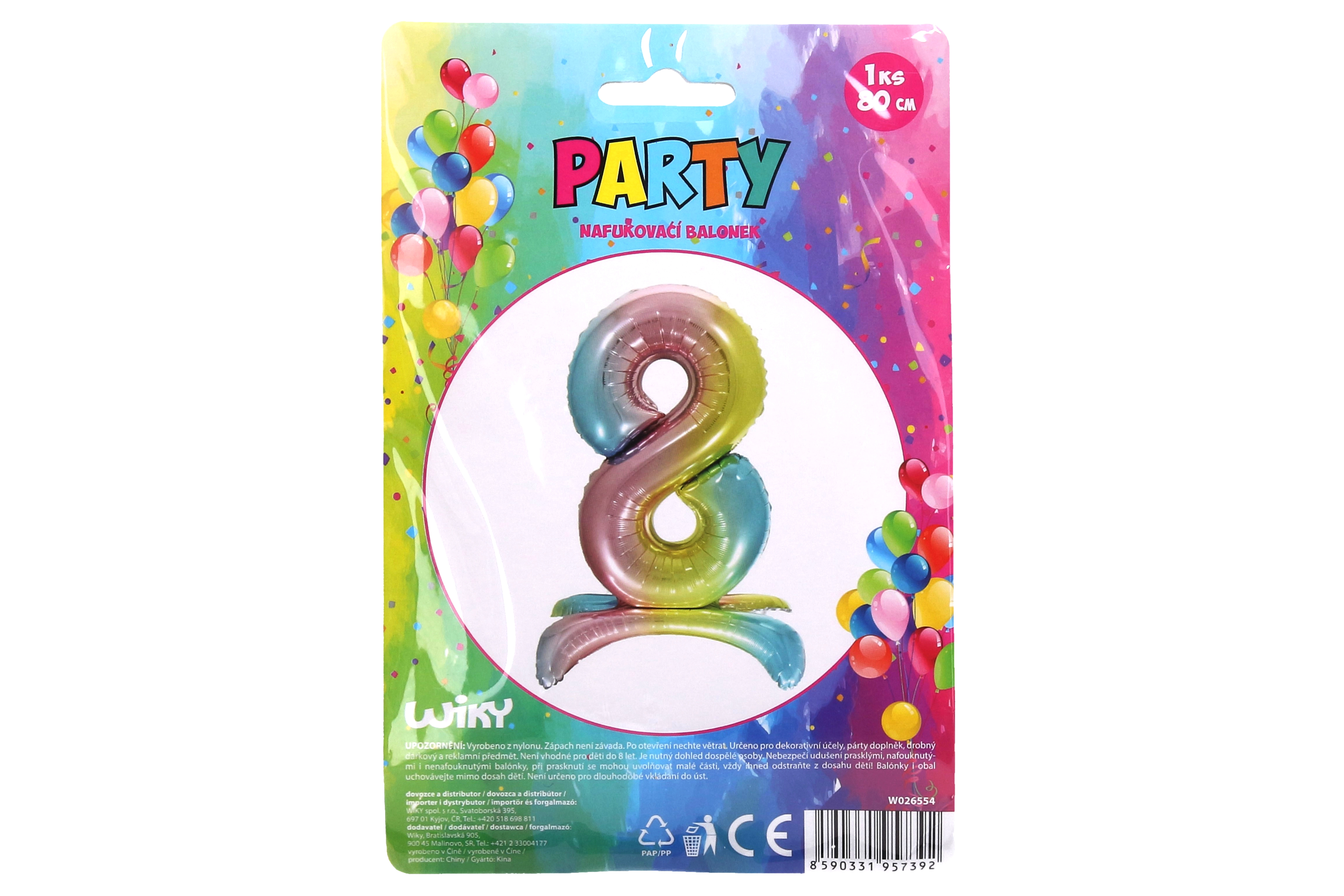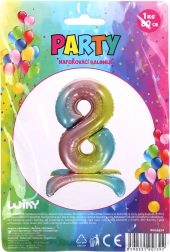 Στιλάτο μπαλόνι φύλλου σε σχήμα του αριθμού 8 με εφέ ουράνιου τόξου, ιδανικό για γενέθλια, επετείους και θεματικά πάρτι. Χάρη στα έντονα χρώματα και το μεγάλο μέγεθος λειτουργεί ως ευρηματική διακόσμηση και φωτογενές αξεσουάρ για κάθε πάρτι.