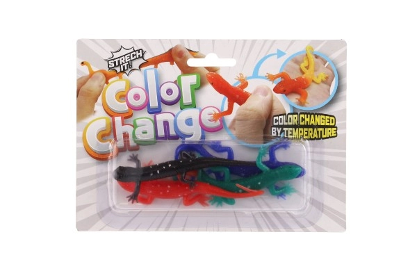 Ανακαλύψτε έναν κόσμο διασκέδασης με αυτές τις ελαστικές σαύρες που αλλάζουν χρώμα! Αυτά τα παιχνίδια μπορούν να τεντωθούν, να παραμορφωθούν, να πεταχτούν στον τοίχο ή να μπουν σε ζεστό νερό για μοναδικό χρωματικό εφέ. Είναι εξαιρετική επιλογή για παιδιά που αγαπούν τα δημιουργικά και διαδραστικά παιχνίδια.