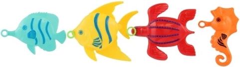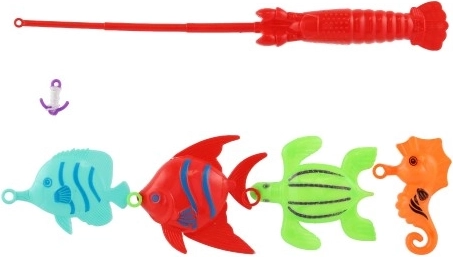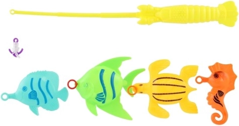 Στη συσκευασία θα βρείτε 4 πολύχρωμα ψαράκια και ένα παιδικό καλάμι με αγκίστρι. Χάρη στην ελαφριά κατασκευή, χειρίζεται εύκολα ακόμη και από μικρότερα παιδιά. Το σετ είναι κατάλληλο για παιχνίδι τόσο στο δωμάτιο όσο και μέσα στο νερό. Τα χρώματα των μερών μπορεί να διαφέρουν.